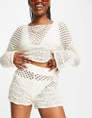 Miss Selfridge Crochet Shorts In Cream Asos